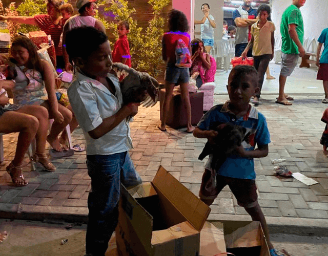 Os novos membros da família, as galinhas Catarina e Preta de Neve foram dadas aos garotos na festa. “Foi o presente que sempre quis ganhar. Estou muito feliz e prometo que vou cuidar muito bem dela. Já estamos com os milhos e toda hora alimento ela”, disse sorridente Alejandro.