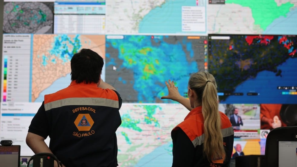 O Centro de Gerenciamento de Emergências (CGE) da Defesa Civil mantém operação ininterrupta, 24 horas por dia, sete dias por semana, com monitoramento constante das condições climáticas e envio de alertas às prefeituras e à população.