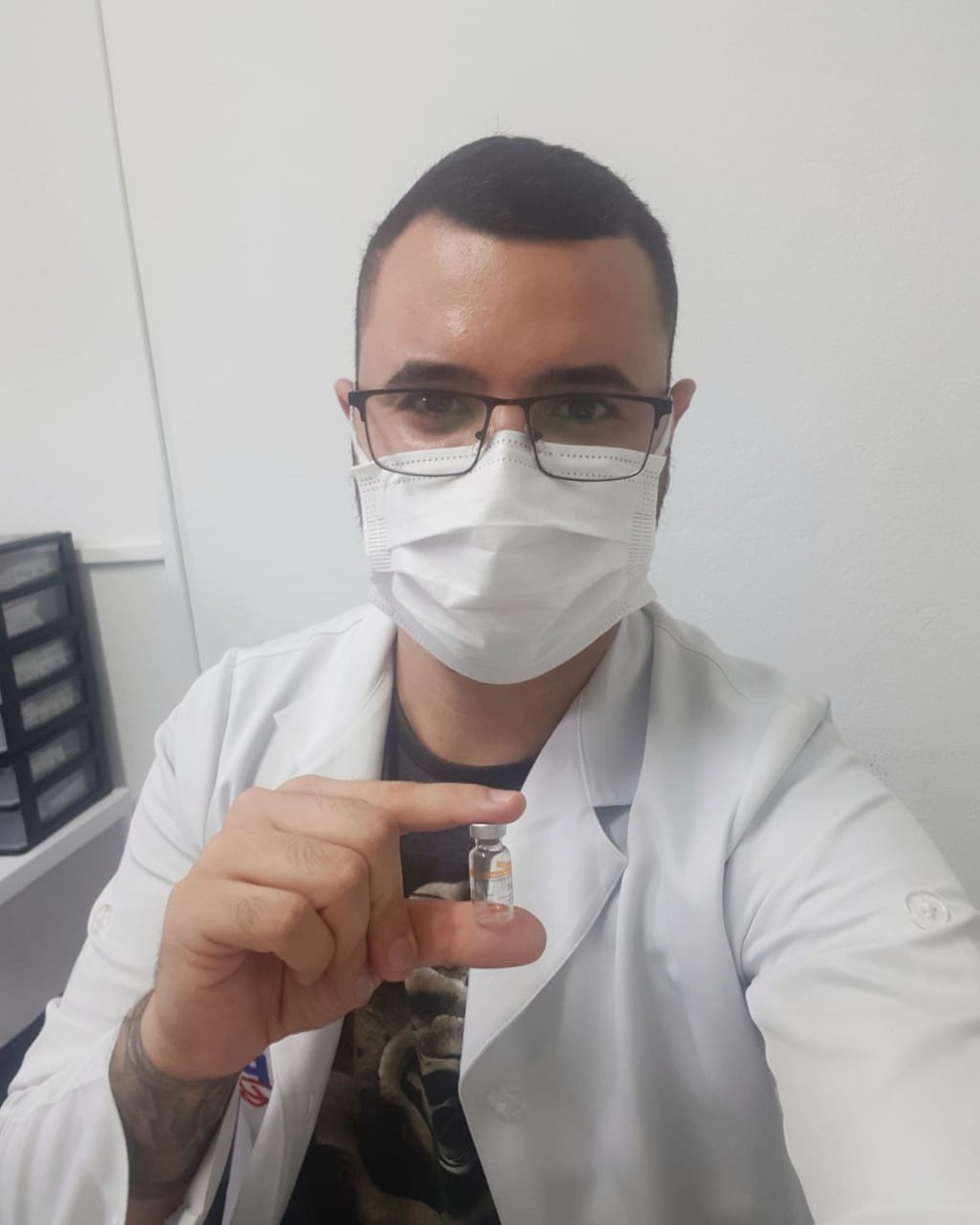 Em entrevista ao G1, Gustavo Henrique conta que está desde o início da pandemia atuando na linha de frente de combate à Covid19. Neste período, atuou na estabilização de pacientes contaminados nas enfermarias de Joinville e fez plantões na vigilância epidemiológica. Atualmente, trabalha na Central de Imunização, e comemora as imunizações contra a doença.