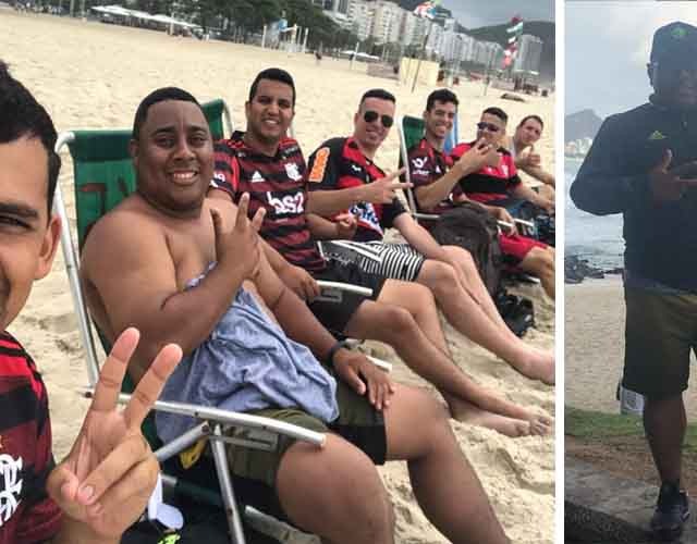 Na praia, o grupo de amigos, que incluiu ainda um torcedor do Flamengo de Piracicaba (SP), alugou cadeiras de praia e resolveu comer espetinhos de camarão.