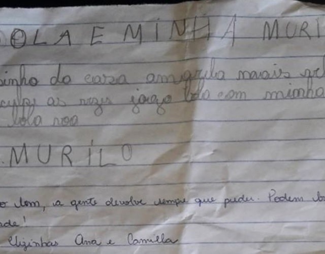 O garoto enviou uma carta para às moradoras de Anápolis (GO) pedindo desculpas por ter deixado bolas caírem no quintal delas. Elas responderam devolvendo os brinquedos e dando bombons.