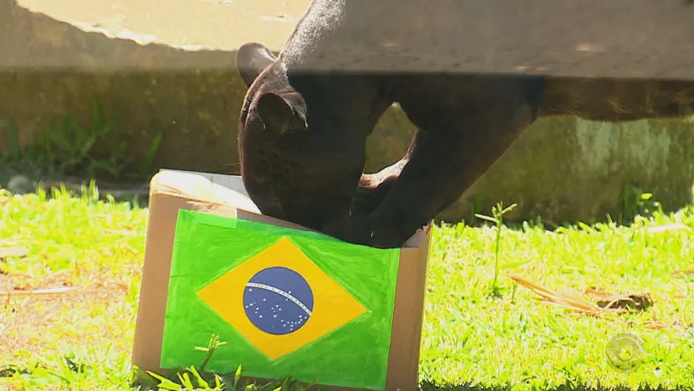 “Teve o comentário que tiveram o polvo que fazia a escolha dos times, e aí nós pensamos porque a gente não usa a onça pintada. Ainda mais que as rosetas estão fazendo parte da camisa da seleção. Então dá pra unir essas duas atividades e enriquecimento junto com essa ligação com a fauna silvestre brasileira”, explica a bióloga Tatiana de Barros.