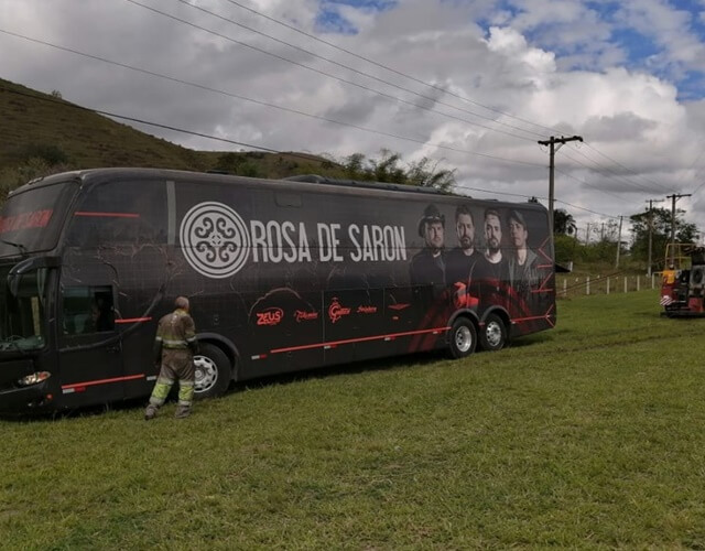 Os integrantes da banda Rosa de Saron estavam no coletivo, mas não ficaram feridos. O ônibus saiu de Campinas (SP) e seguia para o Rio de Janeiro, segundo assessoria.