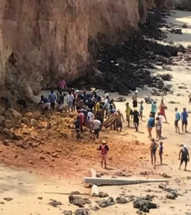 No início da tarde desta terça-feira (17), parte de uma falésia desabou sobre pessoas na praia de Pipa, no Rio Grande do Norte.