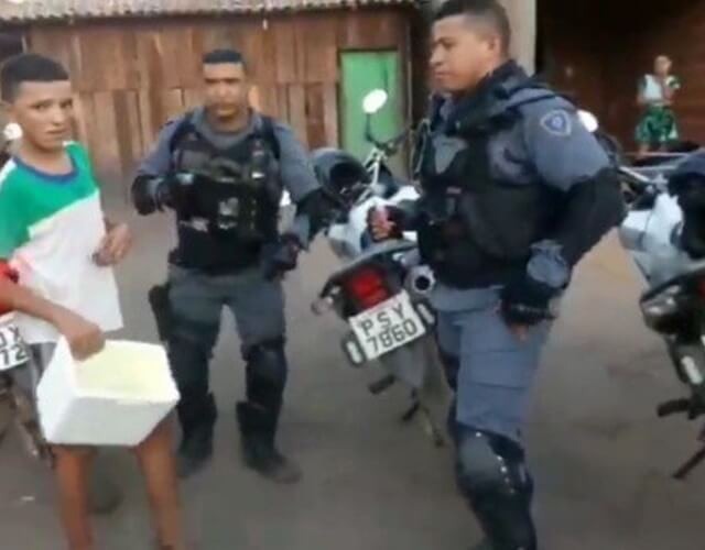 Os policiais comovidos com a situação levaram o garoto até em casa e compraram todos geladinhos dele.