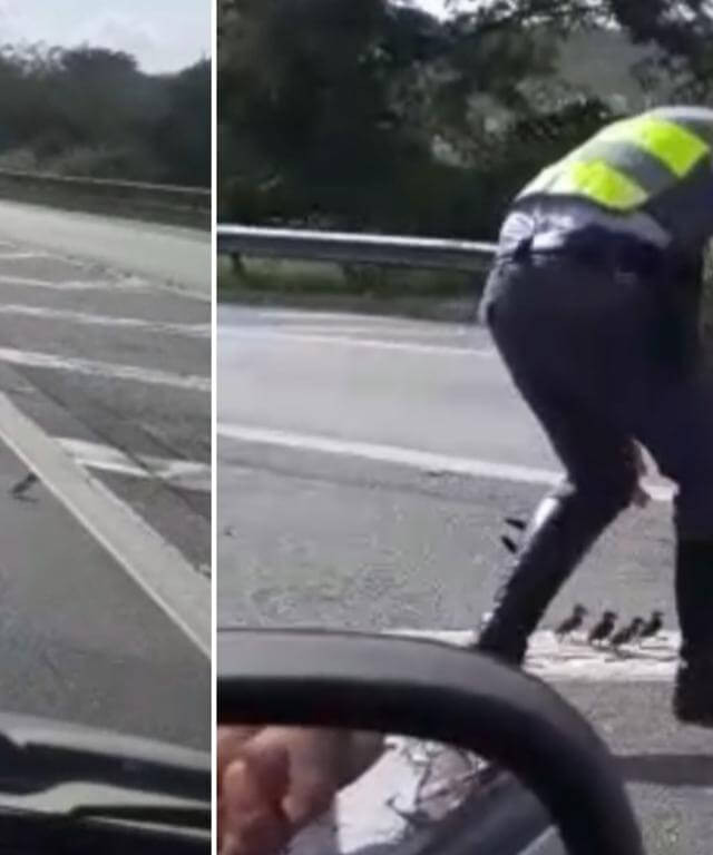 Próximo ao km 38 da rodovia Anhanguera, na altura de Cajamar, policiais rodoviários interromperam o tráfego para que uma família de patos conseguisse atravessar a via. Em fileira, os filhotes foram sendo direcionados por um policial rodoviário – que preferiu não ter seu nome divulgado.