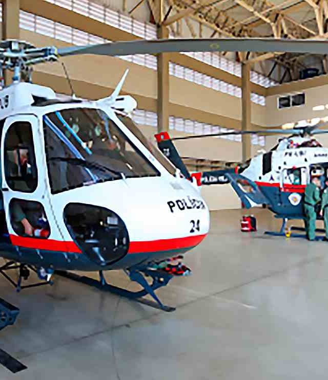 O primeiro helicóptero, modelo Airbus H135, é utilizado em serviços de transporte aeromédico e tem capacidade para transportar até sete pessoas. Já a segunda aeronave, modelo Airbus AS350 B3, é destinada a salvamento e está equipada com um guincho elétrico.