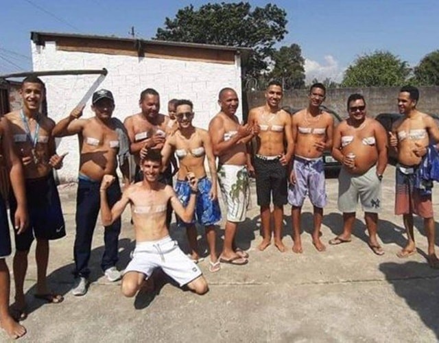As imagens mostram Richard Alcântara sendo surpreendido pelo homens da família com uma fita adesiva no tórax, parecida com a que ele usa diariamente para cobrir os próprios seios.