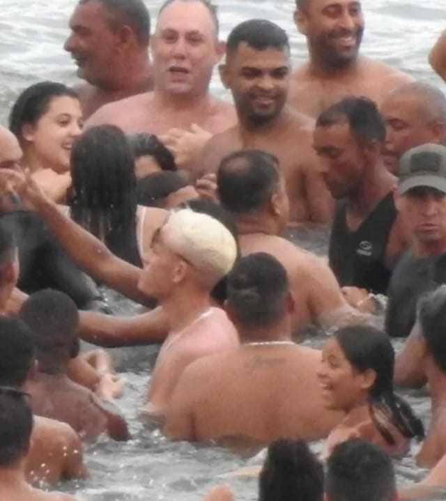 Ao verem Bolsonaro no barco, os banhistas acenaram de longe, e então o presidente pulou no mar. Assim, centenas de pessoas que estavam na praia se aproximaram para cumprimentá-lo.
