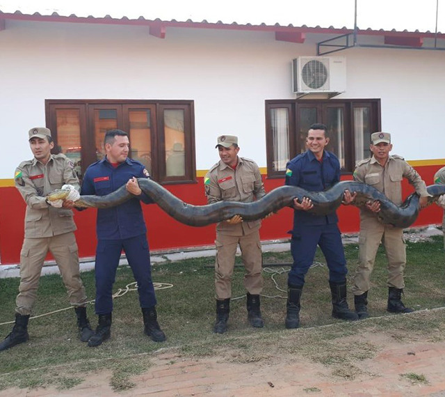 O animal foi encontrado pelo dono da propriedade, que imobilizou a cobra com uma corda e acionou o Corpo de Bombeiros do Acre. Seis bombeiros foram ao local e fizeram a captura do animal.