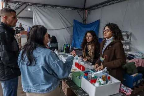 O ponto de acolhimento se assemelha a um acampamento, com diversas barracas divididas em áreas específicas: atendimento médico, farmácia, alimentação, roupas e cobertores, apoio psicológico e transporte solidário. Há também uma oficina improvisada e um local para abastecimento das embarcações.
