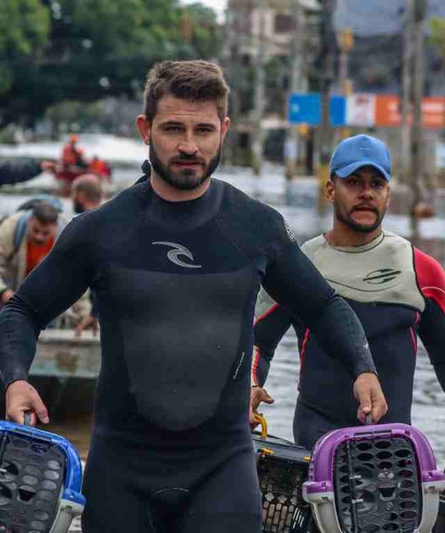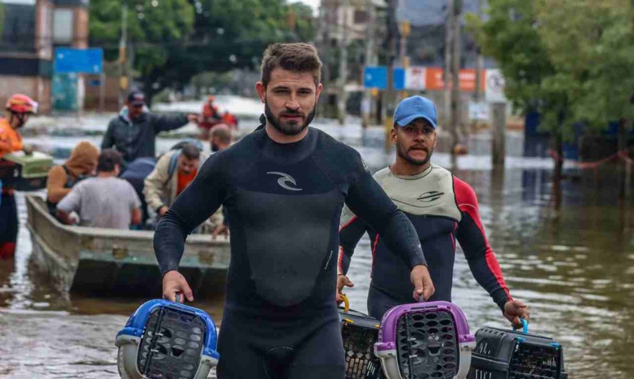 A logística de resgate de animais inclui primeiros socorros veterinários e um abrigo provisório. A médica veterinária Sheila Kircher, que perdeu uma amiga na tragédia, se dedica ao trabalho solidário para ajudar os animais. “Eu perdi uma amiga na enchente e fiquei me sentindo muito impotente sem poder ajudá-la no momento que ela precisou. Então, também, para ocupar a cabeça, eu achei melhor vir e ajudar no que eu podia, né?”, conta.