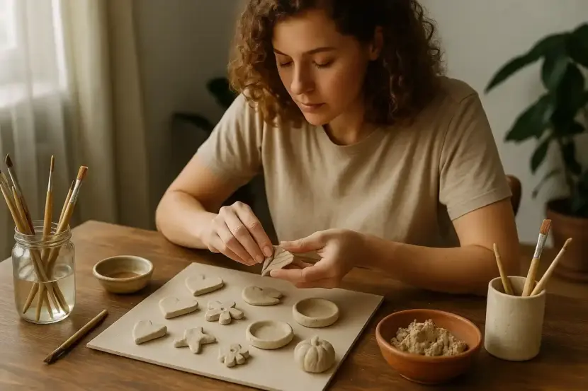 Com criatividade, dá para montar kits ou coleções temáticas para presentear ou começar um pequeno negócio. O valor está justamente no feito à mão. Uma ideia criativa e funcional é usar a argila caseira para criar porta-copos personalizados. Basta moldar círculos de espessura média, adicionar relevos com folhas naturais ou carimbos e deixar secar. Depois de pintados e envernizados, esses porta-copos viram peças únicas, ideais para presentear ou usar em casa.