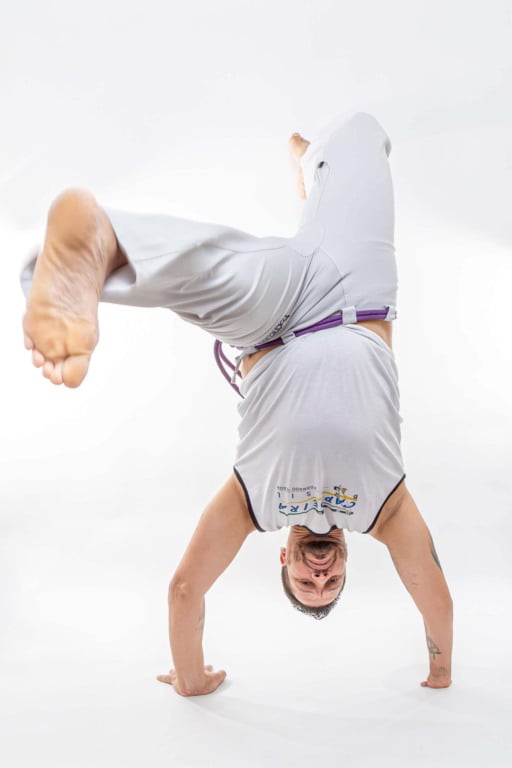 Assim, desde 1998, ele treina de duas a três vezes por dia. “A capoeira me ajudou a me empoderar, quebrar muitas das minhas limitações e preconceitos comigo mesmo. Até começar a treinar na adolescência, eu só andava com o braço no bolso.”