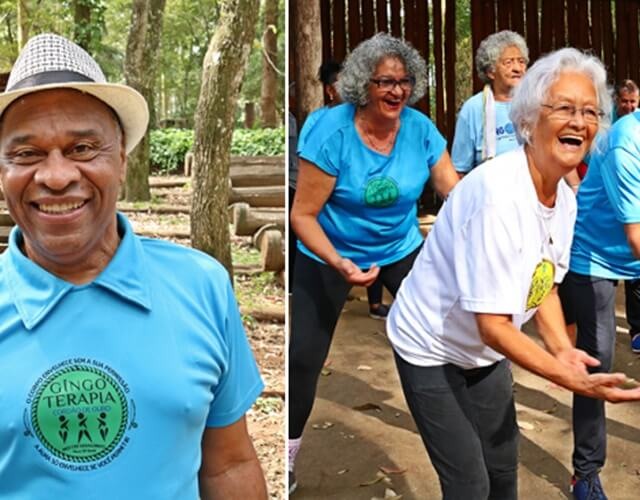 A ‘gingoterapia’ movimenta a vida dos idosos da Comunidade Perus e bairros vizinhos, em São Paulo (SP). Pensada a partir dos movimentos da capoeira e sincronizada com danças e músicas populares ritmadas ao som do berimbau, a modalidade se tornou a nova sensação.