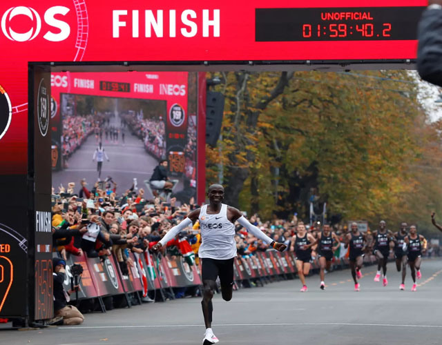 E, como não poderia ser diferente, a conquista foi emocionante. Uma equipe de 41 corredores (revezando-se em times) apoiou Kipchoge, que ficara apenas 26 segundos distante da marca em Monza, na Itália, em maio de 2017, em outro evento de patrocinador, na primeira tentativa organizada para tentar quebrar a barreira das duas horas.