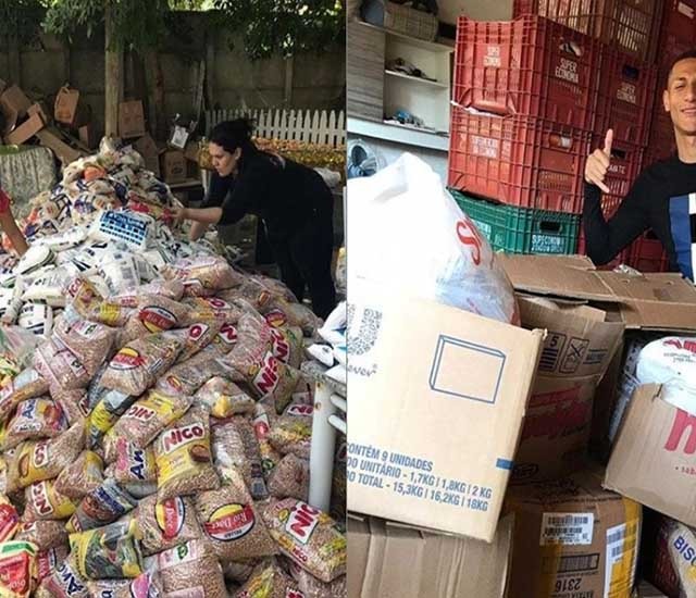 Richarlison organizou um amistoso festivo no Estádio Zenor Pedrosa Rocha. Além da partida, que contou com a presença do craque, ídolo em sua cidade, o evento funcionou para arrecadar esses alimentos.