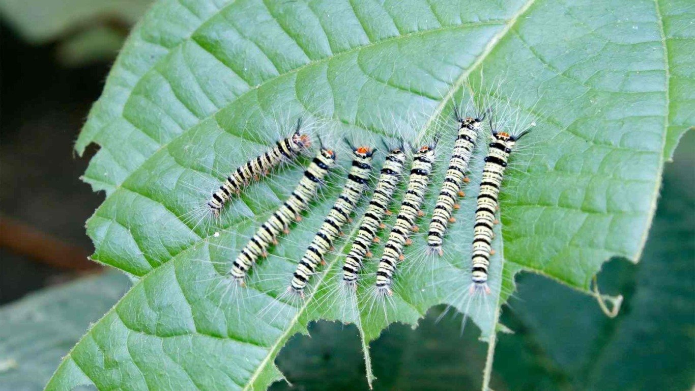 Outro sinal que pode aparecer: bolinhas verdes ou pretas sobre as plantas ou substratos. Nesse caso, é possível que lagartas estejam visitando suas plantas. Tome cuidado, pois muitas espécies de lagartas são revestidas por pelos venenosos que podem causar queimaduras e até provocar choque anafilático. Imediatamente, você deve eliminar as colônias e os ovos que normalmente ficam no verso das folhas. As lagartas adultas devem ser retiradas com a ajuda de uma vareta.