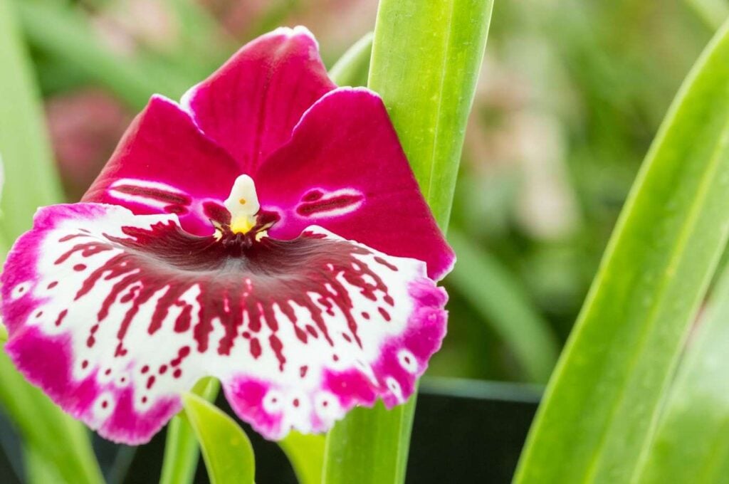 - Características: conhecida por suas flores delicadas e aroma agradável, a Miltonia é uma orquídea de crescimento simpodial.