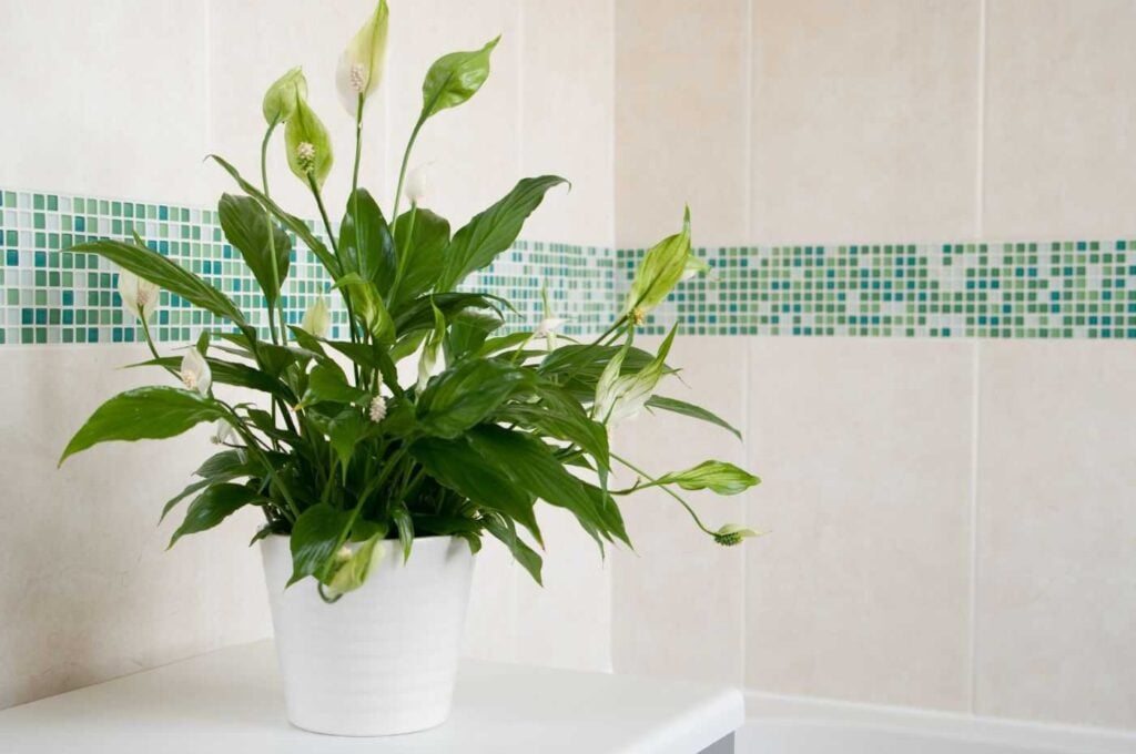 O lírio é uma planta fácil de cuidar, conhecida por suas belas flores brancas. Além de adicionar um toque tropical ao banheiro, ela é eficaz na remoção de poluentes do ar.