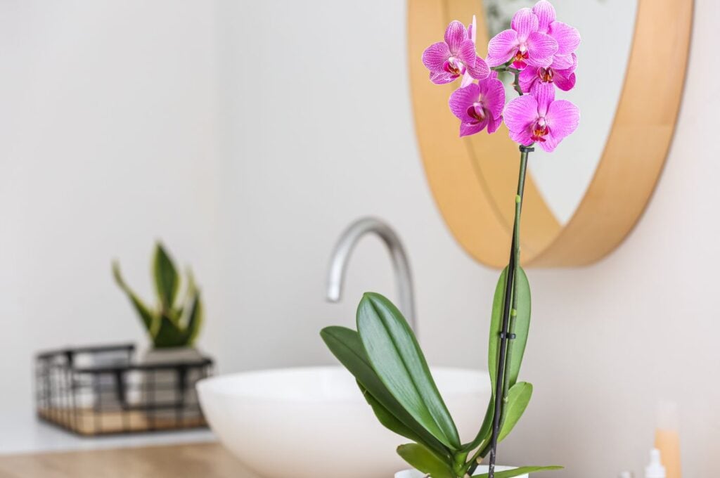 As orquídeas, apesar de sua reputação de serem plantas delicadas, prosperam em ambientes úmidos como o banheiro. Elas adicionam um toque de sofisticação e elegância ao espaço.