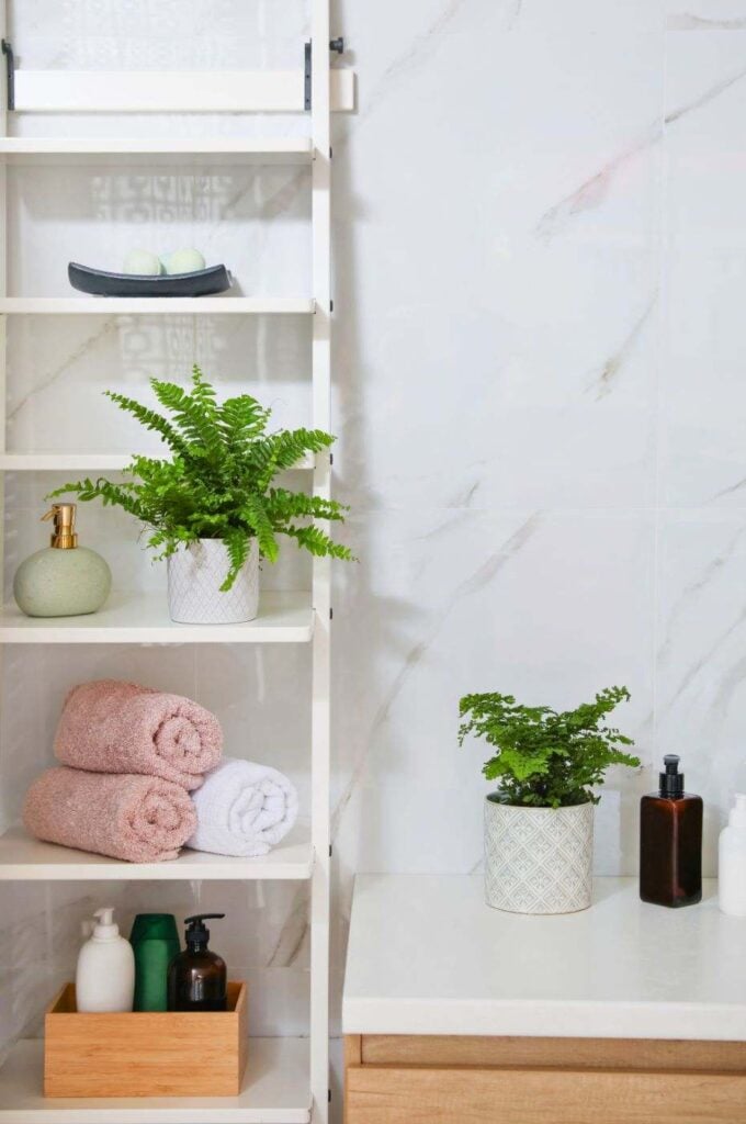 A samambaia é uma planta excelente para banheiros, pois adora umidade e sombra. Suas folhas delicadas e plumosas trazem um charme natural ao ambiente.