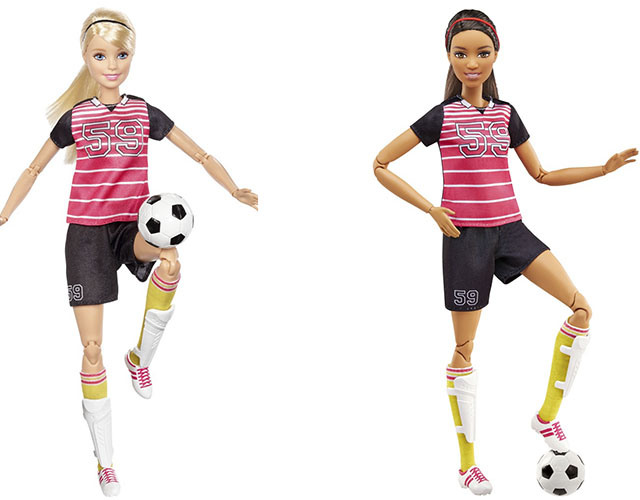 As novas bonecas da linha homenageiam também outras cinco profissões, além da jogadora de futebol, como bombeira, astronauta, jornalista, pilota e candidata.