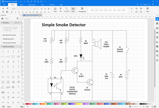 Um circuito elétrico não é um trabalho artístico, mas técnico. Por isso, a importância de programas como o EdrawMax, uma ferramenta bastante fácil e intuitiva de ser usada. Com ele você consegue criar facilmente uma série de desenhos para projetos elétricos profissionais, seja você um eletricista, engenheiro, mestre de obras, ou construtor profissional ou iniciante. Além disso, você consegue criar projetos profissionais em poucos passos, porque ele conta com todas as ferramentas e componentes essenciais necessários para criar um diagrama elétrico detalhado.