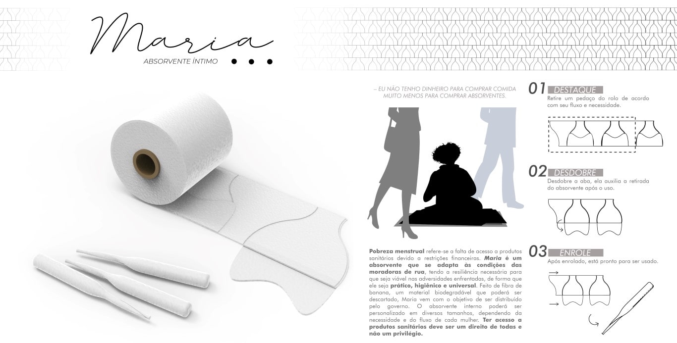 Rafaella de Bona, estudante de de design de produto da Universidade Federal do Paraná (UFPR), desenvolveu o absorvente íntimo “Maria”, que ganhou o prêmio alemão iF Design Talent Award 2019, conhecido como o “Oscar” do design. Com funcionalidade e estética sustentáveis, o produto também pode ter função social.