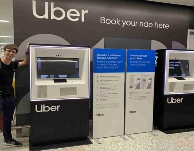 A Uber inaugurou um quiosque no Aeroporto Internacional de Toronto para que passageiros possam solicitar o serviço sem precisar utilizar o smartphone. De acordo com a companhia, esse sistema foi projetado para auxiliar viajantes que possuem dificuldade em usar o aplicativo por problemas de idioma ou tecnologia.