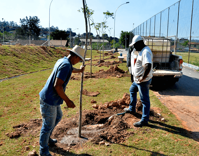 As obras no entorno do Campo do Jardim Promeca continuam. Depois da instalação de 16 postes, a Prefeitura de Várzea Paulista, plantará mudas por todo o espaço.