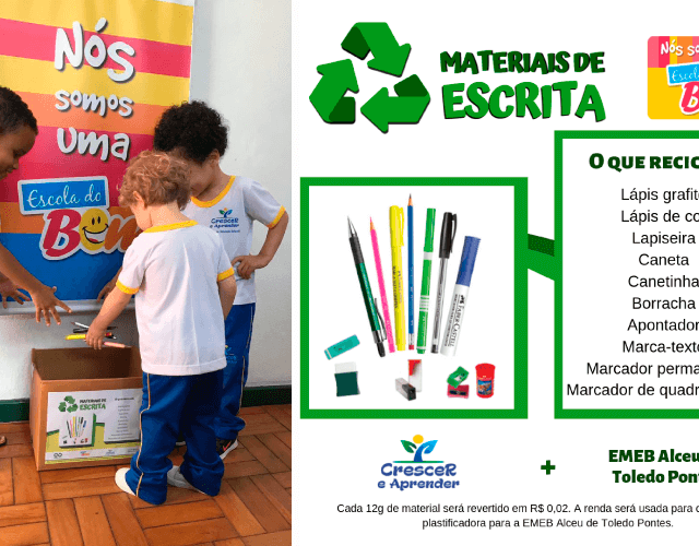 A Escola Crescer e Aprender e a Emeb Alceu de Toledo Pontes iniciam a campanha de reciclagem de materiais de escrita através de uma parceria entre o Instituto NOA, mantenedor do projeto Escolas do Bem, do qual as duas instituições de ensino fazem parte, e a empresa Terracycle.