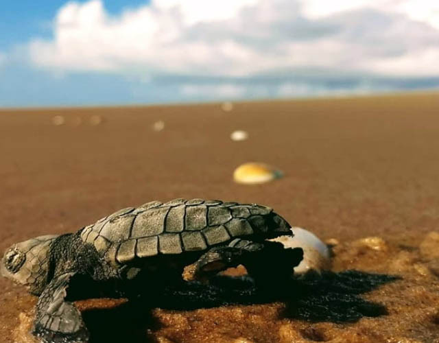 São pequenas tartarugas que haviam nascido pela manhã em algum ponto do litoral nordestino. Por diversos fatores, elas não conseguiram deixar a ninhada rumo ao mar e corriam risco de vida. Após serem coletadas para identificação da espécie, puderam finalmente se encontrar com o oceano.