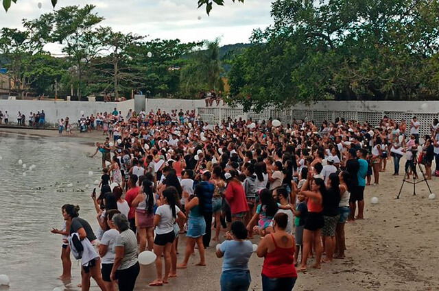 A homenagem reuniu centenas de pessoas, que ficaram na faixa de areia e também em alguns barcos no mar, por volta das 17h.