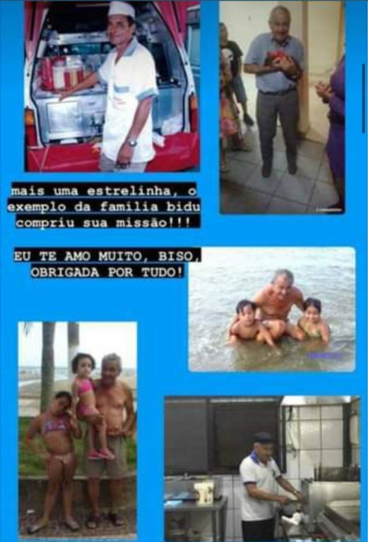 “[…] Escrevo esse texto com lágrima nos olhos, pois o seu Pedro marcou a minha infância, sempre com um sorriso fácil e fofo, muito simpático e carinhoso com todos… que Deus o receba de braços abertos! esteja e descanse em paz! Obrigada por tudo e por tanto. Sou grata por ter te conhecido, por ter participado da história do Bidu, e até lanche com meu nome no cardápio eu ganhei […] Seu Pedro, Eu te amo!”