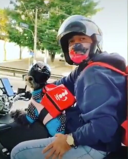 Depois de sua adoção, Marcelo começou a trabalhar com entregas para o iFood. Ele levava a cachorrinha apenas como meio de distração, mas com o passar dos dias ela praticamente implorava para sair com ele. Desde 2013 ela o acompanha com sua mochilinha e seu capacete. Juntos já somaram mais de 400 mil entregas.