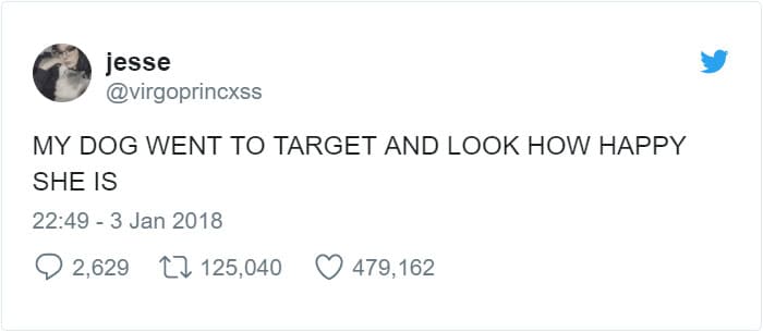 Quando Zira, o cachorrinho meio Corgi, e sua dona foram para a loja de departamento Target, em Monterey, no estado da Califórnia, nos Estados Unidos, ela simplesmente não conseguiu lidar com a emoção. Jesse, sua tutora, publicou as fotos da animação do pet em seu Twitter, alegrando muitos internautas.