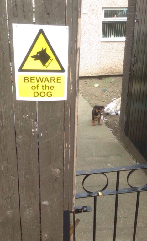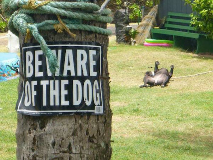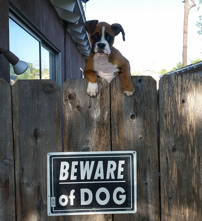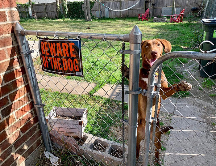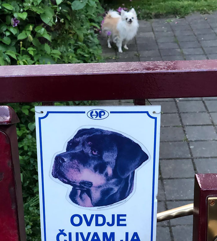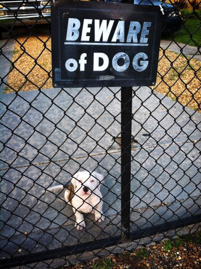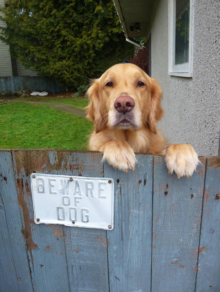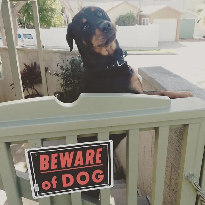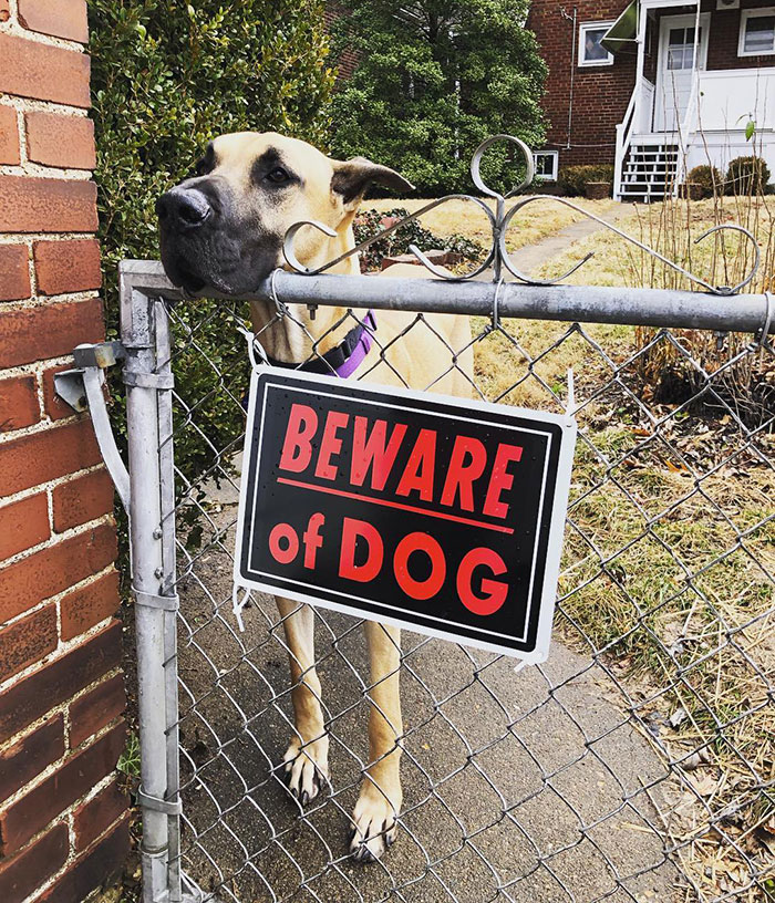 Para afastar estranhos indesejados, alguns tutores adquirem a temida placa “Cuidado com o Cão” ou então “Cão Bravo” para que as pessoas saibam do ‘perigo’ e não se aproximem, seguindo seu caminho sem importunar o cachorro e sua propriedade.