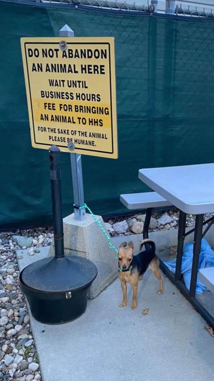 Infelizmente, no entanto, havia um pequeno cachorro amarrado à base da placa de trás. Alguém provavelmente abandonou o cachorrinho na noite anterior. As imagens de segurança mostraram que o cão, que mais tarde recebeu o nome de Trixie, foi amarrado à placa por volta das 21h e só o encontraram às 7h30 da manhã seguinte, o que significa que ela esperou ali por pelo menos 11 horas.