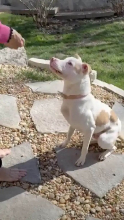 Enquanto caminhava pela calçada do lado de fora da SRSL, a equipe encontrou um cachorro amarrado a uma árvore. O grupo de funcionários ficou chocado com a descoberta. Normalmente, as famílias passavam pela calçada do memorial com seus cães, mas esse pit bull estava, infelizmente, sozinho. A equipe correu para ajudá-lo e perceberam imediatamente como ele estava feliz em vê-los.