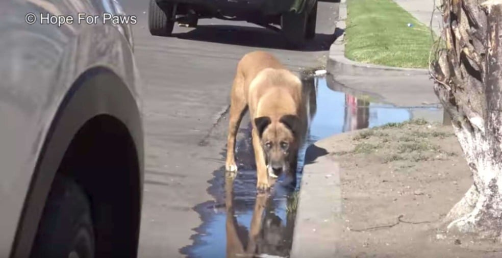Até que alguém decidiu procurar a organização Hope for Paws para conseguir ajudar o Faraó. A equipe de resgate dirigiu até o bairro em que ele morava e acabou avistando-o caminhando lentamente ao longo de uma calçada.