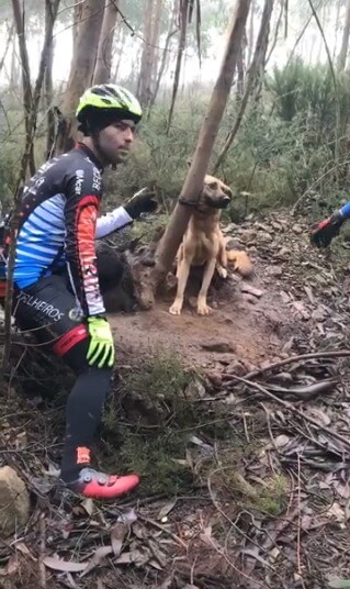 Um vídeo compartilhado no Facebook mostra o momento em que dois ciclistas salvam um cachorro que estava amarrado a uma árvore. O vídeo, gravado na Espanha, viralizou instantaneamente. Quem abandonou o cão o amarrou muito rente à árvore. Dessa forma, seu pescoço e rosto encostavam no tronco.
