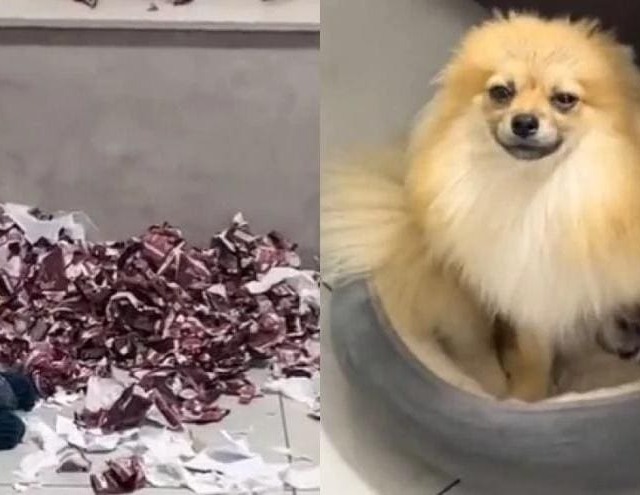 Ela chegou em casa e encontrou suas figurinhas destruídas. O responsável? Seu cachorro, o spitz alemão ted, de um ano e três meses.