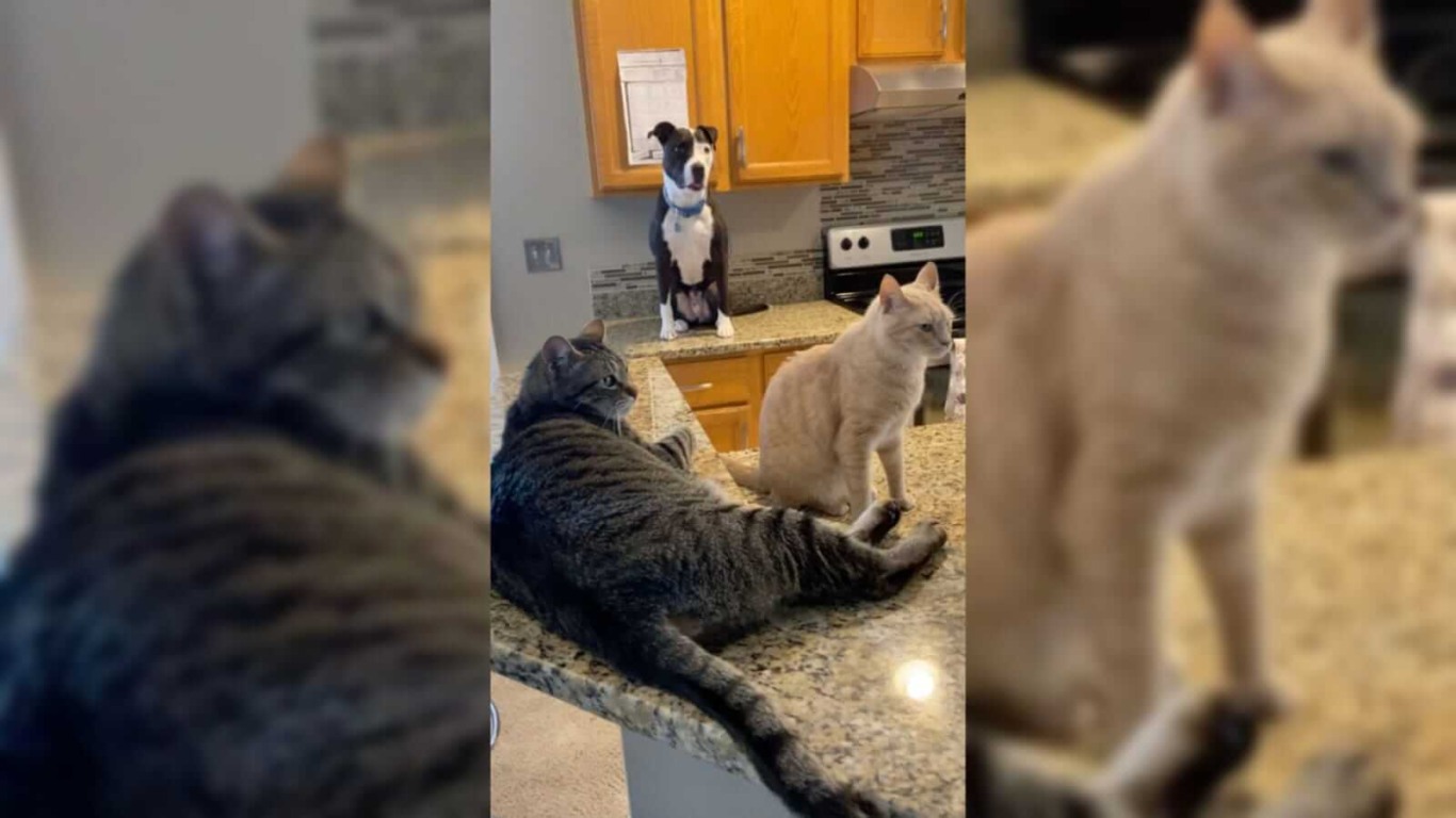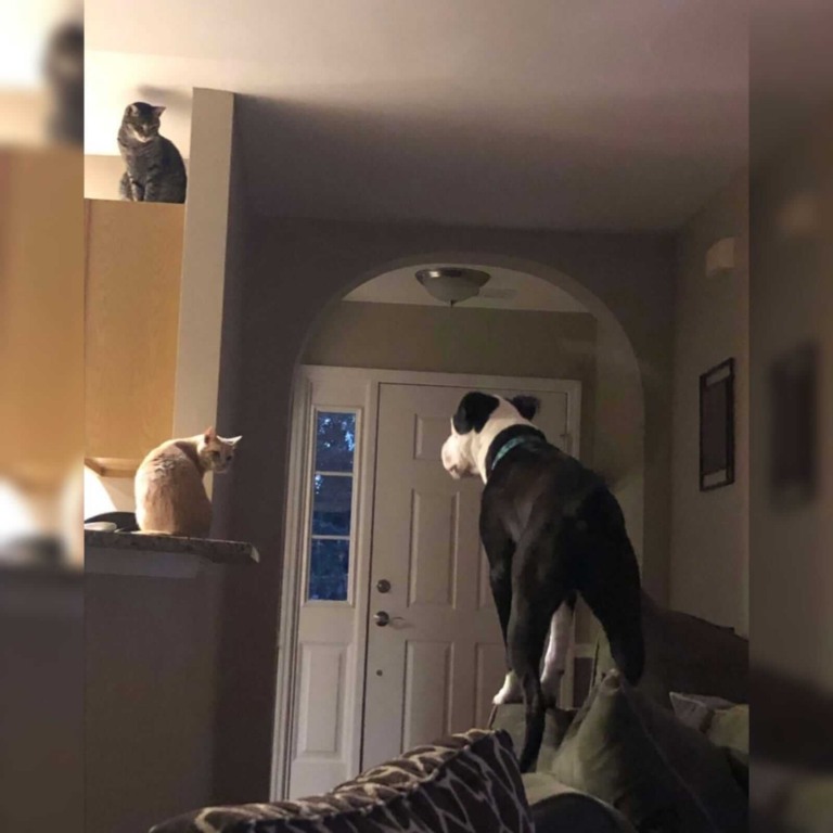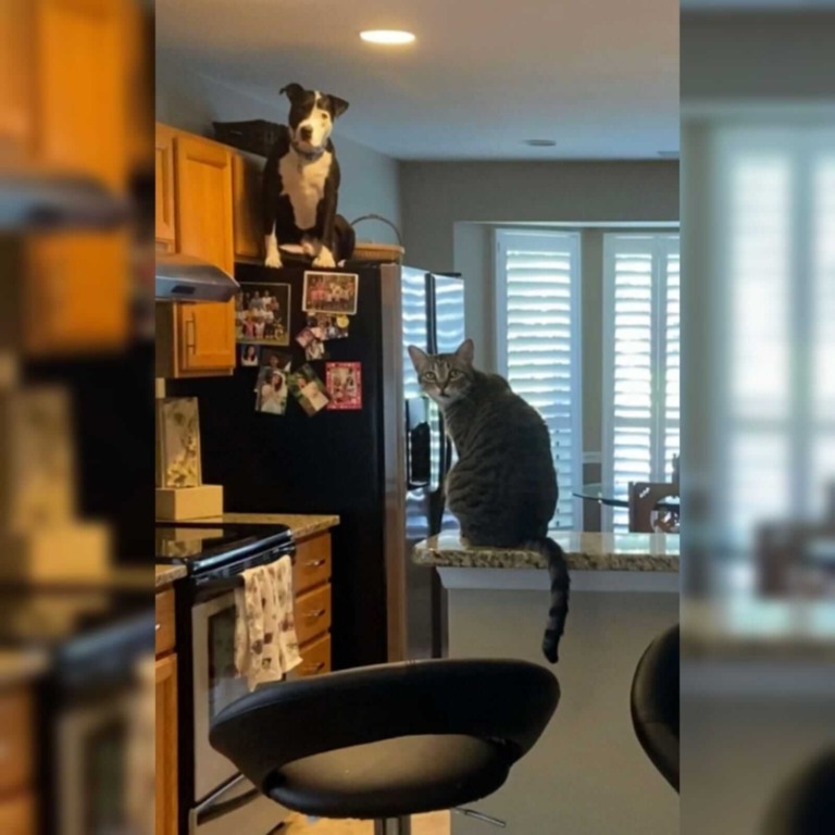 Desde então o cachorro foi criado com um gato, nos EUA e agora tem comportamentos de um felino, o que deixou a todos surpresos e intrigados de como agir.
