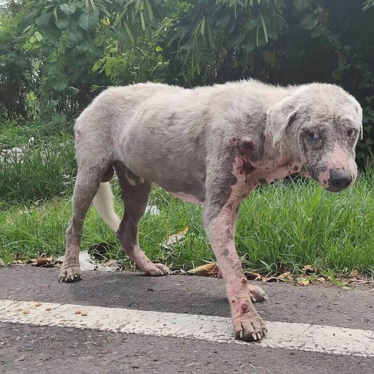 “Ele estava faminto e desidratado e, obviamente, com muita dor. Pensei que ele inicialmente só tinha um problema de pele, mas quando cheguei perto vi todos estes tumores, que pareciam ter estourado. O pobre cãozinho deveria estar em tanta agonia. Parte meu coração saber que ele ficou assim e milhares de humanos provavelmente o viram antes de mim”, relatou Aaron.