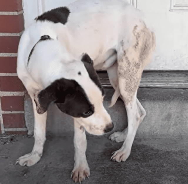 Mas, infelizmente, seu dono não iria mudar de ideia e trazê-lo de volta para casa. Então, o pobre cachorro ficou do lado de fora em um ponto, em sua própria sujeira, esperando por resgate.