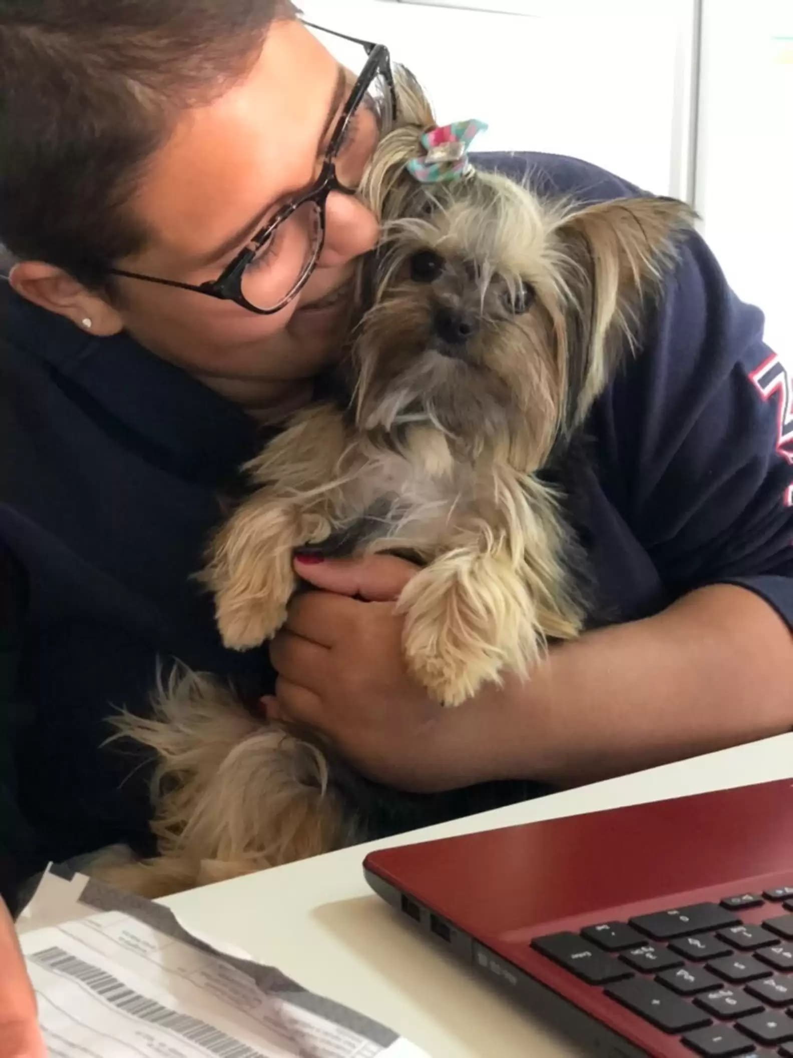 Mas então, além do tratamento padrão, Eduarda recebeu o melhor tipo de remédio. A mãe de Eduarda sabia da saudade da filha por Amora, então resolveu planejar uma surpresa. A essa altura, Eduarda não via seu cachorro há mais de um mês. “Ela e meu médico combinaram que Amora me visitasse”, disse Eduarda. “Foi um dia especial.”