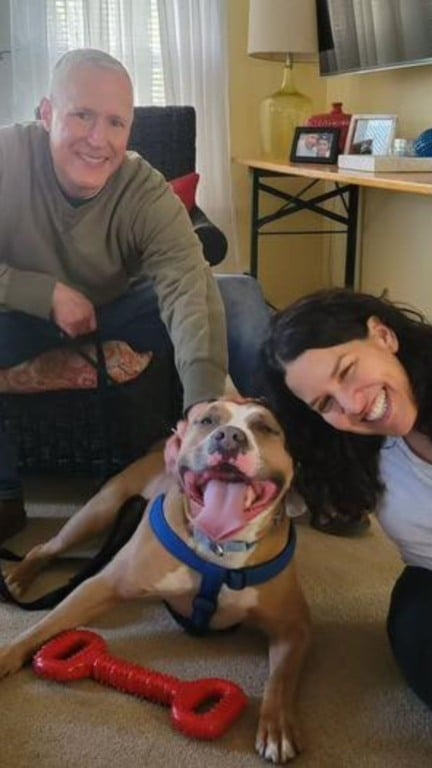 De acordo com a publicação, a nova família absolutamente ama o cachorro grandão, que está prosperando em sua nova casa!