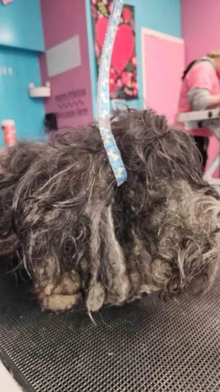 “Ele teve dificuldade em deixá-la, mas a entregou a nós para que pudéssemos garantir que ela fosse para alguém que pudesse lhe dar a vida que ela merecia”, escreveu o abrigo. Assim, o mundo do cão estava prestes a mudar para sempre – e teria que começar com uma tosa muito necessária.