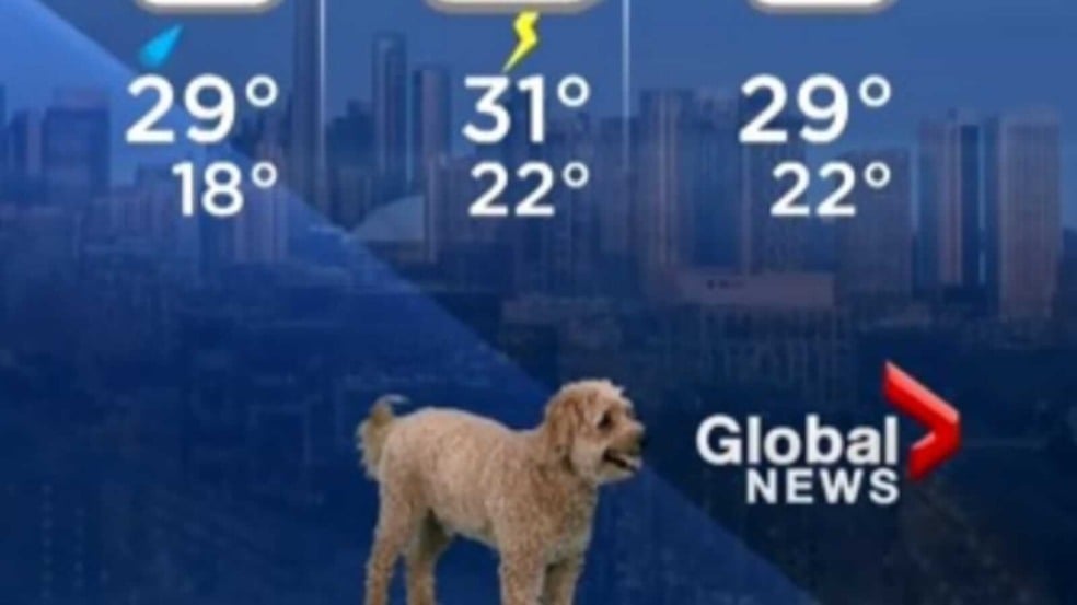 Era mais uma transmissão ao vivo no canal de TV Global News, mas o bloco de previsão do tempo teve um convidado especial: um cachorrinho. O apresentador do canal canadense chamou o repórter Farnell, que começou a delinear a previsão do fim de semana.